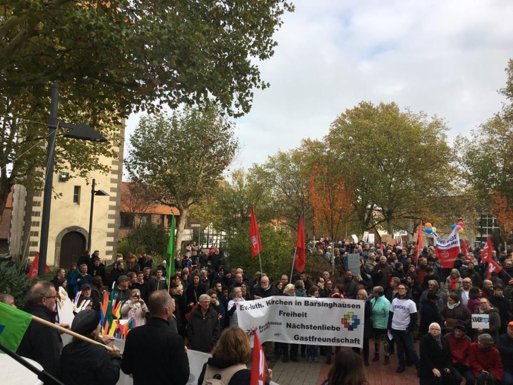 Rund 1300 Menschen haben am Sonntag gegen den Bundeskongress der AfD-Nachwuchsorganisation Junge Alternative (JA) in Barsinghausen protestiert. Ein breites Bündnis „Barsinghausen ist bunt“, darunter auch der Flüchtlingsrat Niedersachsen, hatten unter dem Slogan “Verfassung und Vielfalt schützen – Barsinghausen nazifrei“ zu der Demonstration aufgerufen. „Die Teilnehmerzahl ist überwältigend“, sagte Bündnissprecherin Sybille Bruchmann-Busse nach der Kundgebung. „Wir verteidigen Verfassung und Vielfalt unserer Gesellschaft und wollen keine Nazis in Barsinghausen. Wir setzen den platten völkischen-nationalen Parolen eine große, bunte, vielfältige Demonstration und ein entschlossenes Eintreten für die Werte unseres Grundgesetzes entgegen“.