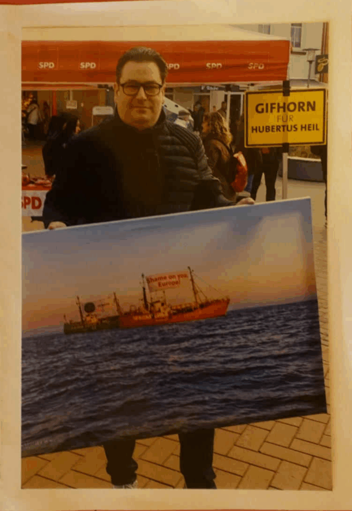 Aus Protest gegen das anhaltende Schweigen auf den Beschuss des Seenotrettungsschiffs „Ocean Viking“ hat der Aktivist Thomas Bollmann in Gifhorn ein Schaufenster in der Innenstadt gestaltet und die in Stadt und Kreistag vertretenen demokratischen Parteien aufgefordert, Stellung zu nehmen. Mit einer Leinwand verweist Bollmann auf die tatkräftige Unterstützung der Seenotrettung durch den verstorbenen Landrat Tobias Heilmann: Die Stadt Gifhorn hatte für das Seenotrettungsschiff „Ocean Viking“ eine Patenschaft übernommen. Der verstorbene Landrat Tobias Heilmann wollte eine „Schiffspatenschaft Landkreis Gifhorn“ nach dem Vorbild der Stadt Gifhorn auch in den Kreistag einbringen, doch dazu kam es nicht mehr. Kurz vor seinem Tod unterlegte er sein Vorhaben aber mit der Aktion „Shame“.