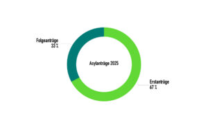 Von den in 2025 gestellten Asylanträgen waren etwa 33% Folgeanträge.